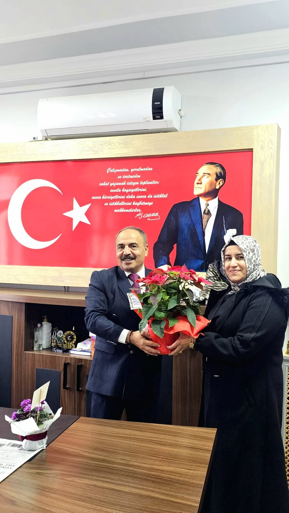 Başkan Aktaş ve ziyaret ekibi, Müdürümüz İşcan'ın nezdinde ilçede görev yapan tüm eğitimcilerin Öğretmenler Gününü kutladı.