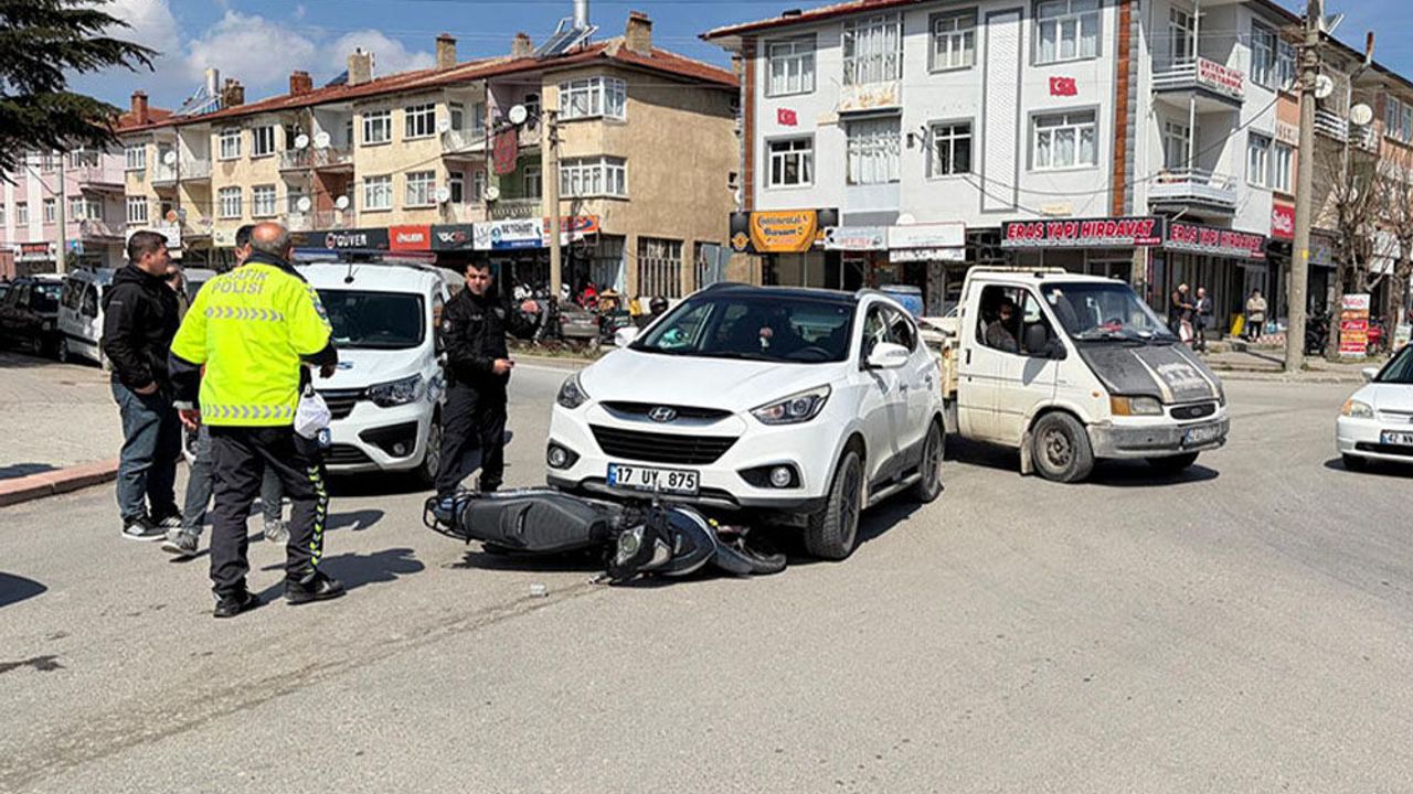 Edinilen bilgilere göre, 17 UY 875 plakalı otomobil sürücüsü Özden Y. ile şehir merkezinden sanayi istikametine seyir halinde olan 42 ATV 335 plakalı motosiklet sürücüsü Ahmet Can G. Sanayi Kavşağı’nda çarpıştı.