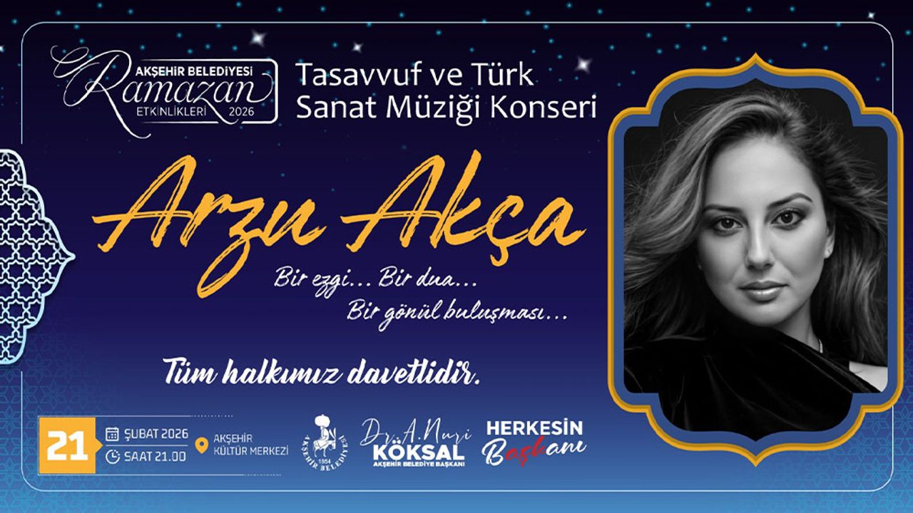 Ramazan’ın ruhuna uygun tasavvuf ve Türk Sanat Müziğinin seçkin eserlerinin seslendirileceği konser, 21 Şubat 2026 Cumartesi günü saat 21.00’de Akşehir Kültür Merkezi’nde gerçekleştirilecek. Programın, Ramazan ruhunun manevi atmosferini güçlendirmesi ve vatandaşlara huzur dolu bir gece yaşatması hedefleniyor. Konsere tüm vatandaşların ücretsiz olarak katılabilecek.