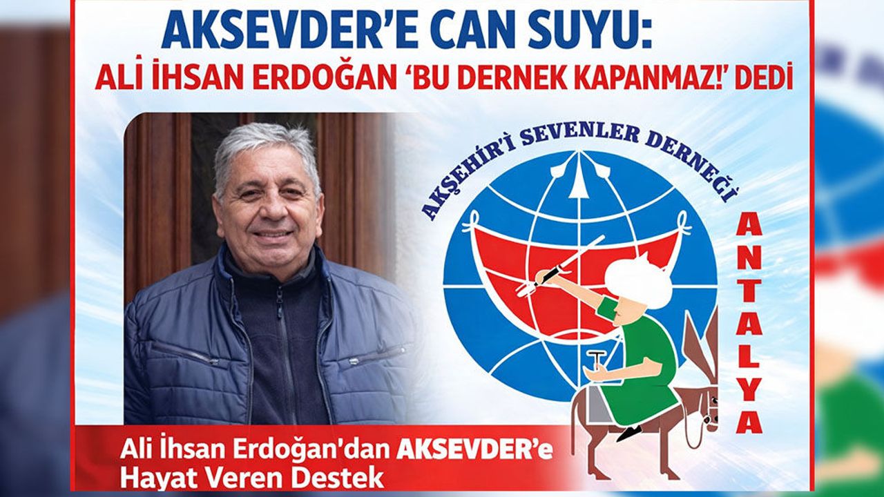 Değerli hemşehrilerimiz, müteahhit Ali İhsan Erdoğan’ın gönülden desteğiyle AKSEVDER’in 1 yıllık kira stopaj vergi borcu ve Nisan 2026 kira bedeli tamamen ödenerek, derneğin üzerindeki mali yükün sıfırlandığı öğrenildi. Şimdi sıra, bu kıvılcımı sürekli bir meşaleye dönüştürmekte! AKSEVDER’in kapılarının hep açık kalması, Akşehir kültürünün Antalya’da yankılanmaya devam etmesi ve evlatlarımıza aktaracağımız hemşehrilik bilincinin kökleşmesi için bu dayanışmaya ortak olunmalıdır. Üye olun ya da olmayın; her ay gönlünüzden kopan, bütçenizi yormayan ama sürekliliği olan küçük bir bağış, derneğin sadece ayakta kalmasını değil, daha büyük organizasyonlara imza atmasını sağlayacak. Unutmayalım ki; bir araya gelmek bir başlangıç, beraberliği sürdürmek ise gerçek bir başarıdır. Gelin, AKSEVDER’i hep birlikte yaşatalım!