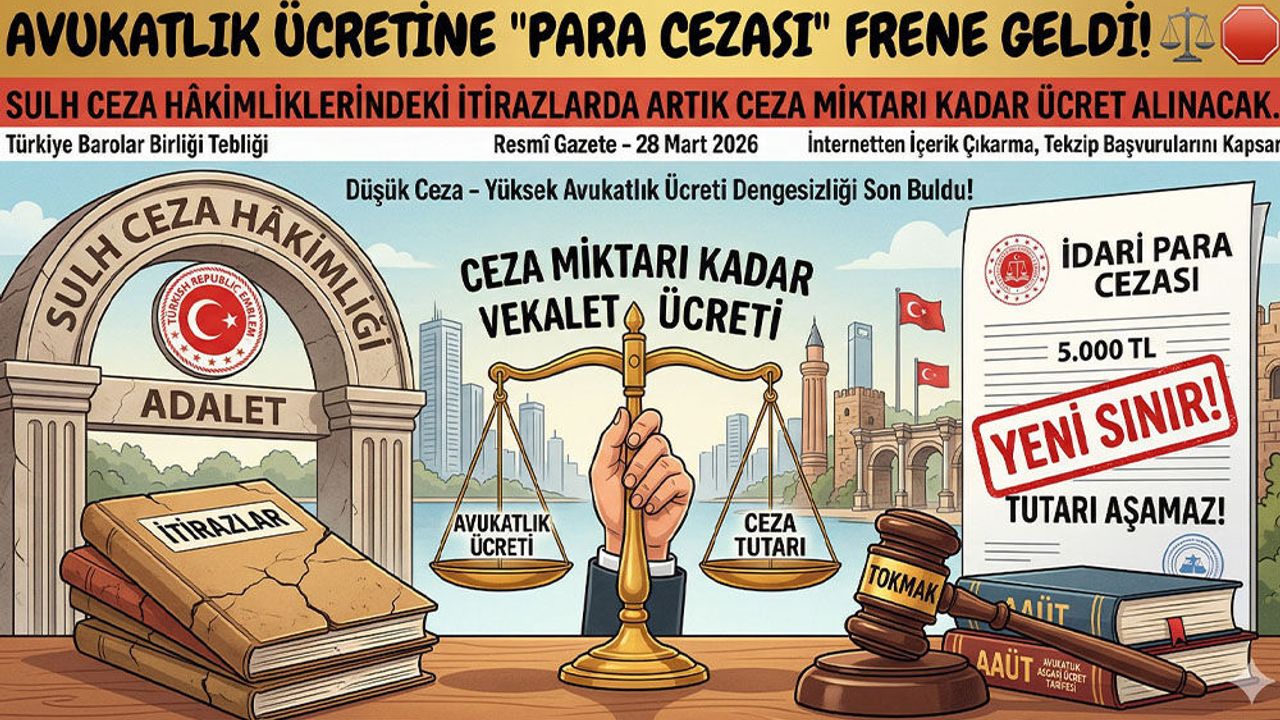 Türkiye Barolar Birliği tarafından hazırlanan ve bugün Resmî Gazete’de yayımlanan yeni tebliğ, özellikle Sulh Ceza Hâkimliklerindeki başvurularda avukatlık ücretlerinin hesaplanma yöntemine dair önemli bir düzenleme getirdi. İnternet’ten içerik çıkarma ve idari para cezalarına itiraz gibi süreçleri kapsayan bu değişiklik, vatandaşın ödeyeceği veya alacağı vekalet ücretlerinde "hakkaniyet" ayarı yapıyor.