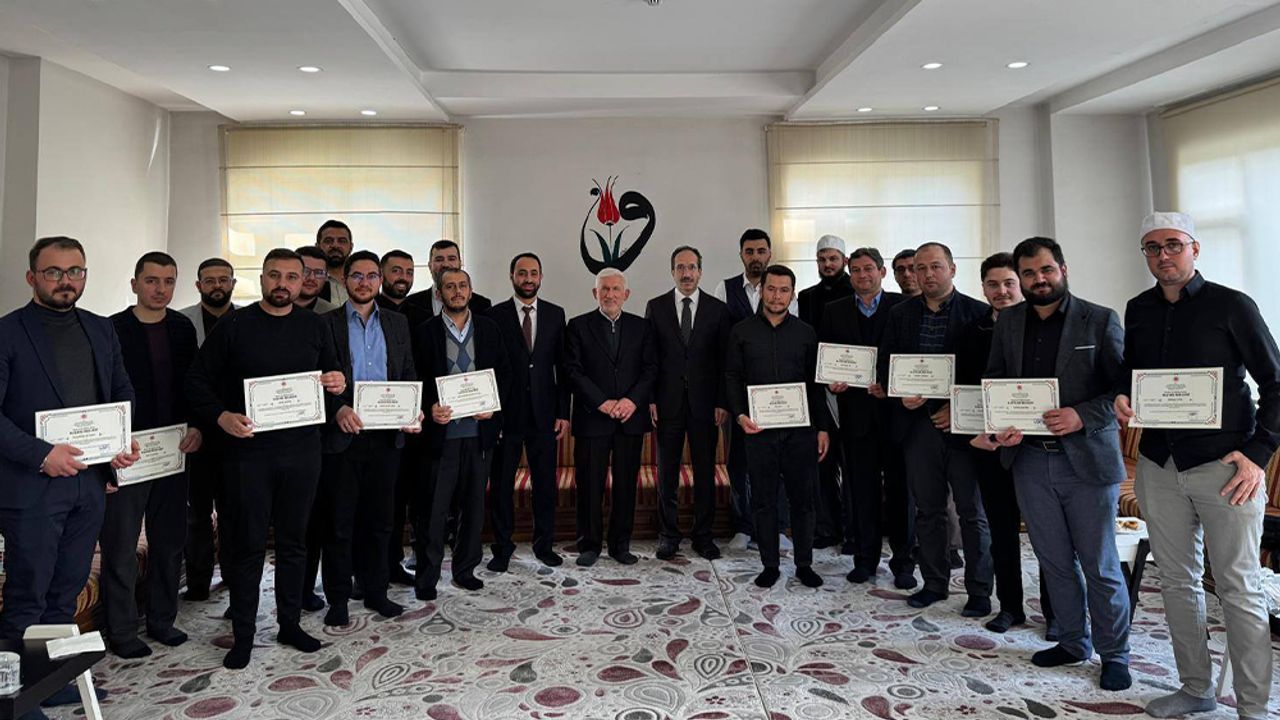 Toplam 6 hafta boyunca yüz yüze gerçekleştirilen eğitim programını başarıyla tamamlayan din görevlilerine belgeleri, Akşehir İlçe Müftüsü Ahmet Müjdeci tarafından takdim edildi.