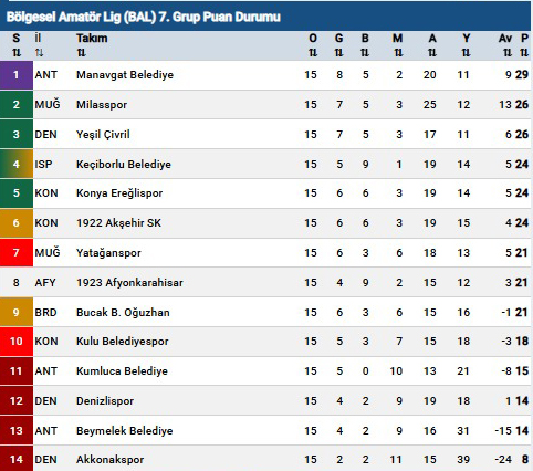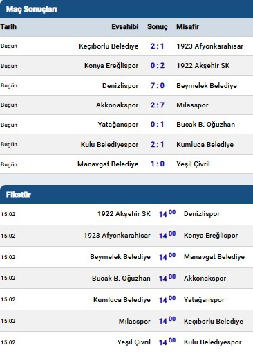 Bölgesel Amatör Lig 7. grup 15. Hafta karşılaşma sonuçları ve on altıncı hafta karşılaşmaları şöyle;