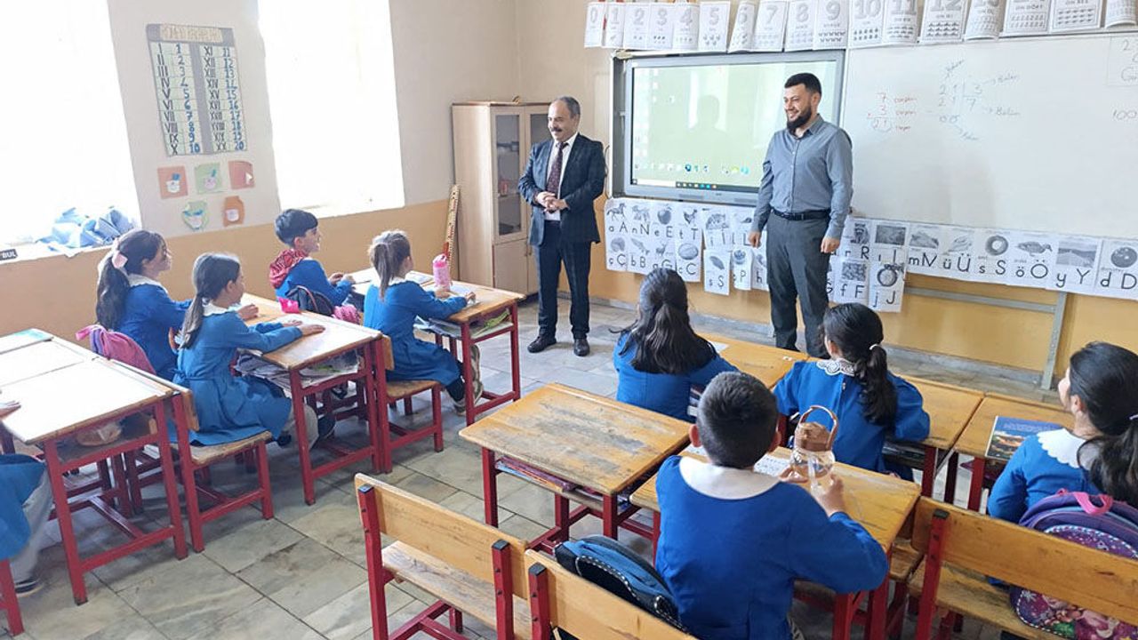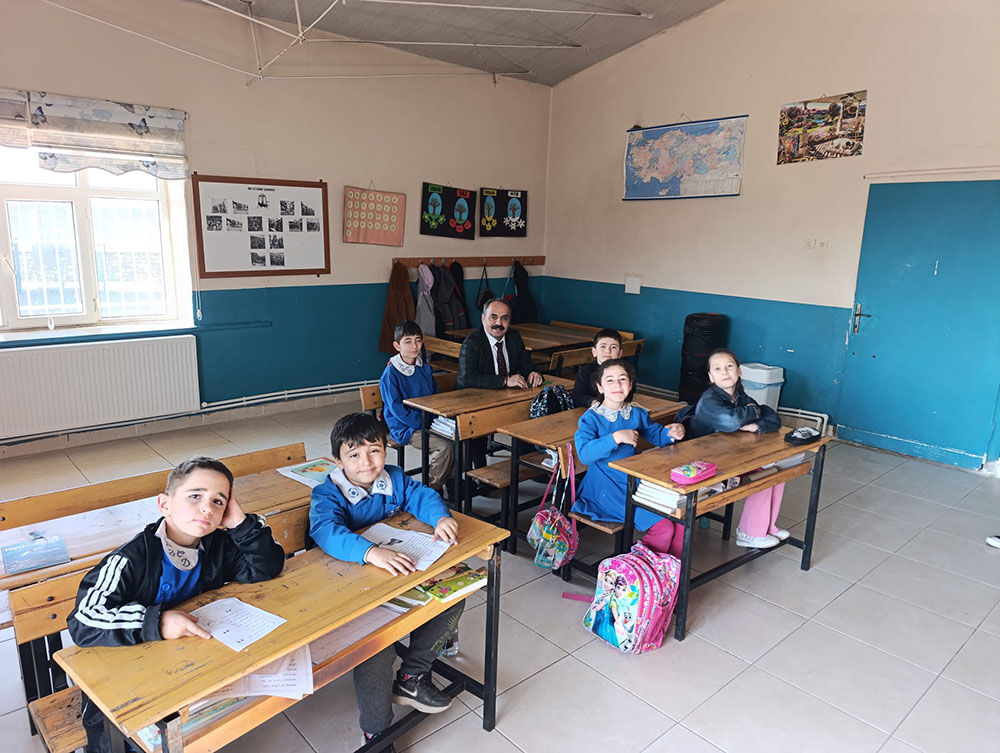 Ziyaret kapsamında birleştirilmiş sınıflarda eğitim gören öğrencilerle yakından ilgilenen İlçe Milli Eğitim Müdürü Mahmut İşcan, sınıf içi etkinlikleri gözlemledi ve öğretmenlerle eğitim sürecine dair değerlendirmelerde bulundu.