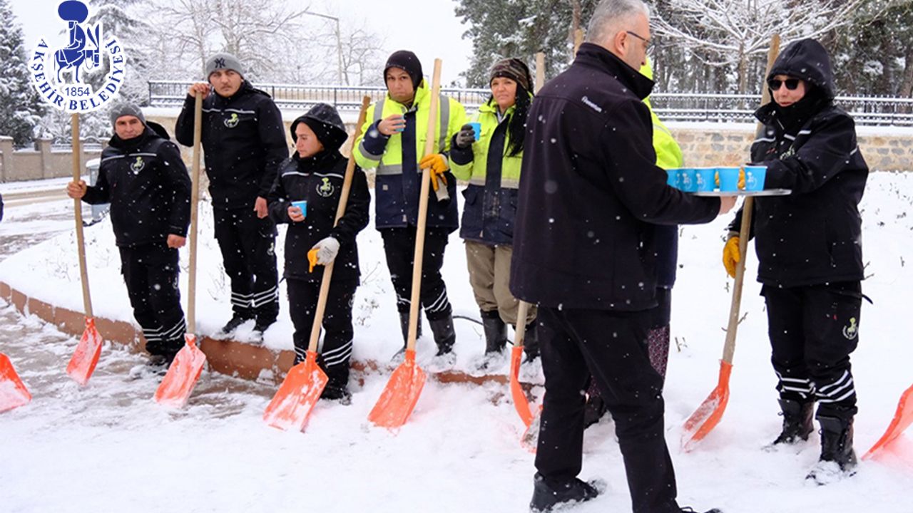 Soğuk hava koşullarında fedakârca görev yapan personelin moral ve motivasyonunu artırmak amacıyla gerçekleştirilen ikram, sahada görevli ekipler tarafından memnuniyetle karşılandı. Akşehir Belediyesi ekipleri, kar yağışının başladığı ilk andan itibaren ana arterler, hastane yolları, okul çevreleri ve yaya yollarında çalışmalarını aralıksız sürdürüyor.