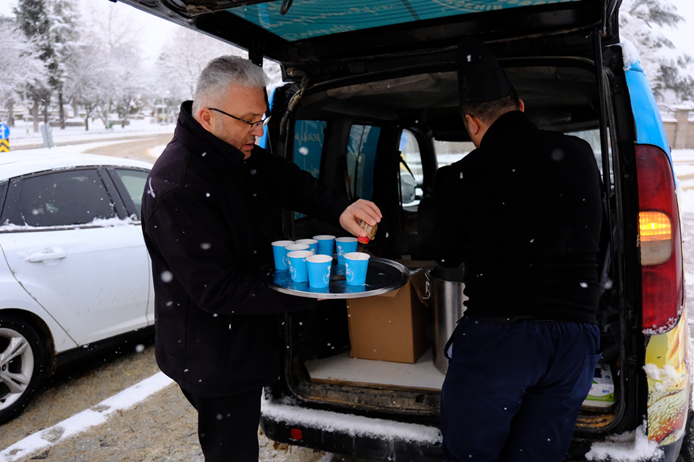 Gerçekleştirilen ikram ile ilgili konuşan Akşehir Belediye Başkanı Dr. A. Nuri Köksal, zorlu kış şartlarında büyük bir özveriyle görev yapan personele teşekkür ederek, “Hemşehrilerimizin günlük yaşamının aksamaması için gece gündüz sahada olan çalışma arkadaşlarımızın emeği çok kıymetli. Bu zorlu koşullarda onların emeklerine küçük de olsa bir sıcaklık katmak istedik.” ifadelerini kullandı.