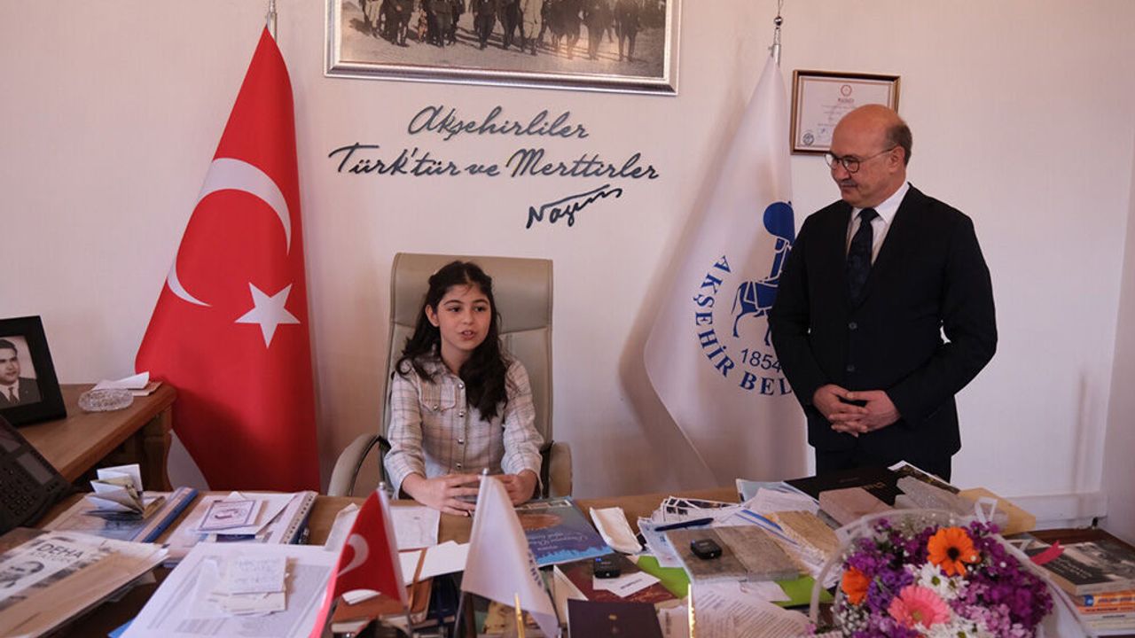 23 Nisan Ulusal Egemenlik ve Çocuk Bayramı, Akşehir’de hem duygusal hem de umut dolu anlara sahne oldu. Kutlamalar kapsamında Akşehir Belediye Başkanı Dr. A. Nuri Köksal, başkanlık koltuğunu Tarık Buğra İlkokulu 4. sınıf öğrencisi 11 yaşındaki Duru Ceylan’a temsili olarak devretti.
