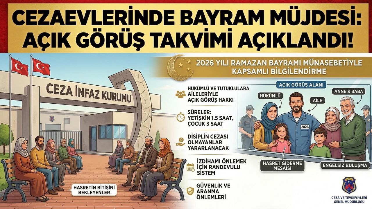 Bayramların manevi iklimini cezaevlerine taşımayı hedefleyen Genel Müdürlük, yayımladığı genel yazı ile hem personel hem de ziyaretçiler için planlamayı kolaylaştıracak detayları paylaştı. Düzenleme, disiplin cezası olmayan tüm mahkûmları kapsarken, ziyaretlerin izdihama yol açmadan huzur içinde geçmesi için sıkı güvenlik önlemleri alınacak.