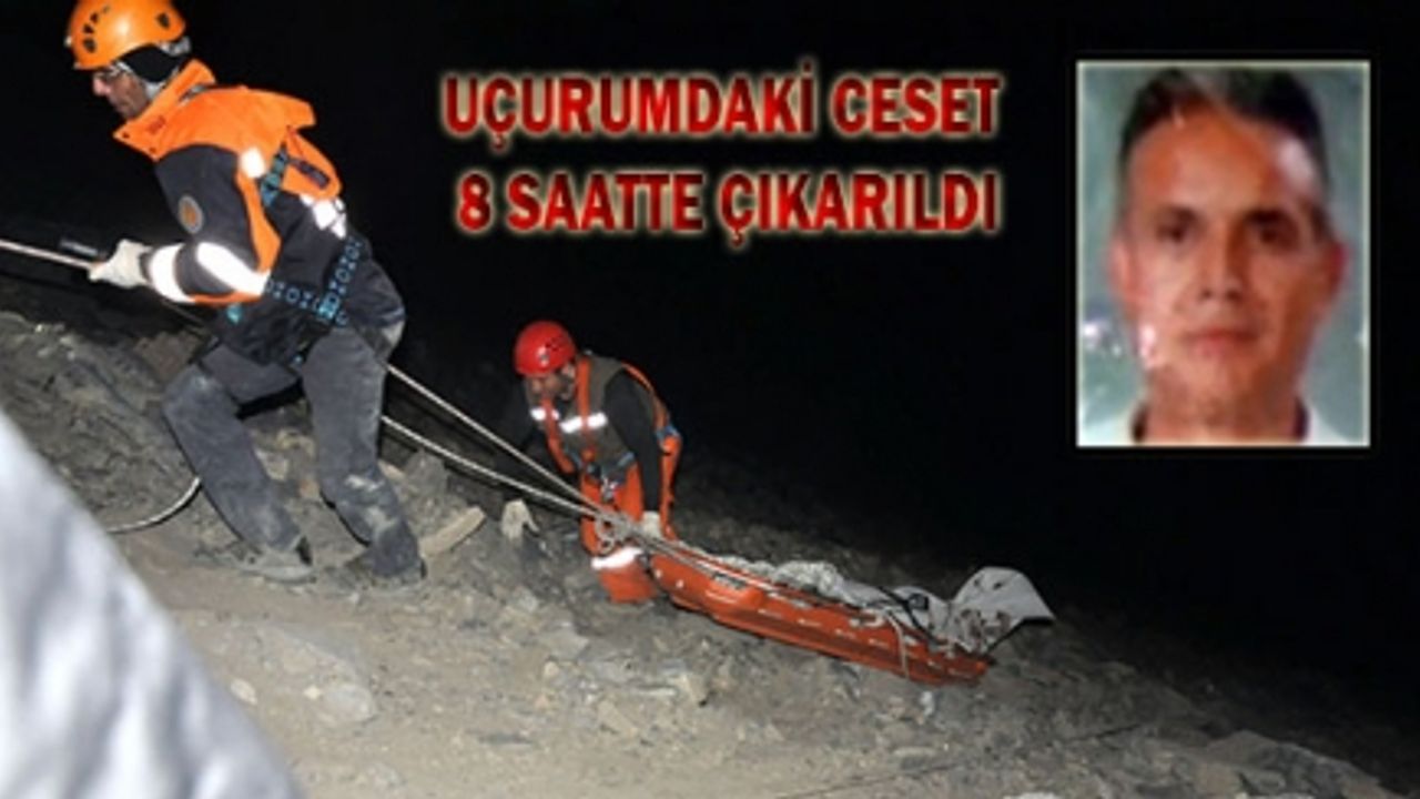 Cankurtaran Köyü yakınlarında uçuruma düşen bir araçtaki ceset itfaiye ve acil kurtarma ekiplerinin yoğun çabası ile 8 saatte çıkartılabildi.