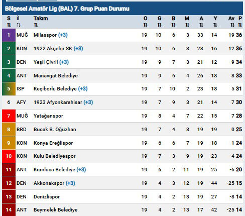 Bölgesel Amatör Lig 7. grup 19. Hafta karşılaşma sonuçları ve yirminci hafta karşılaşmaları şöyle;